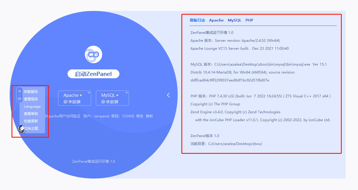 2. ZenPanel集成运行环境使用说明